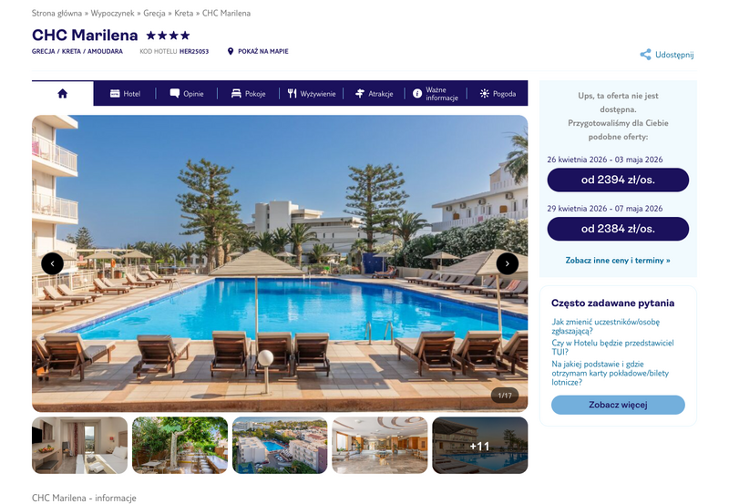 Niedostępność oferty została udokumentowana zrzutem ekranu.