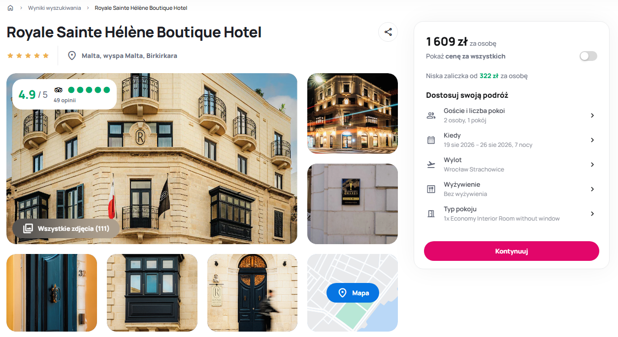 Słoneczne wczasy na Malcie to doskonała propozycja na bezpośredni wyjazd z Wrocławia do luksusowego 5* hotelu butikowego.