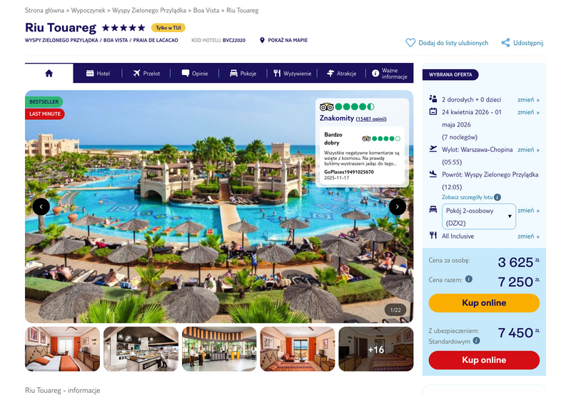 Aktualizacja: Wyspy Zielonego Przylądka (Boa Vista): 5* Riu Touareg z all inclusive za 3525 zł