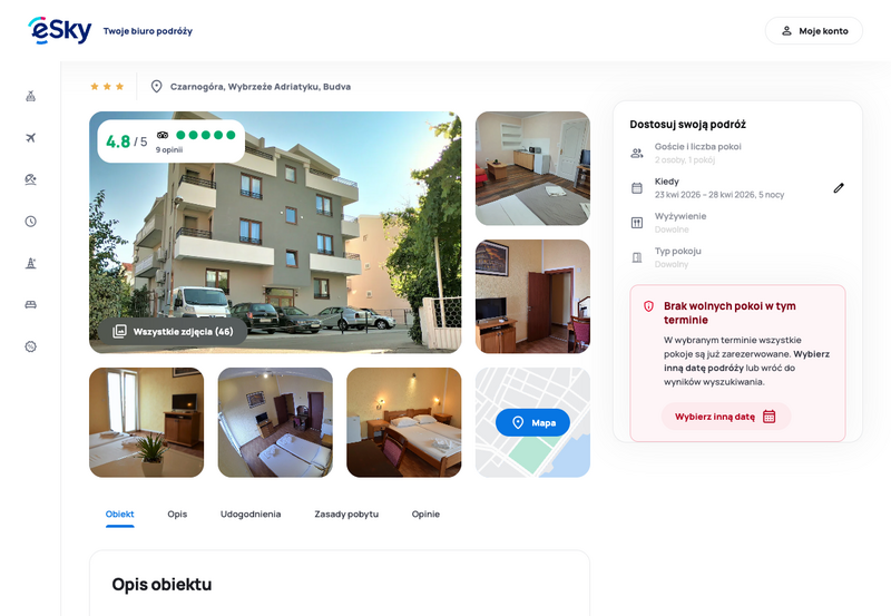 Niedostępność oferty została udokumentowana zrzutem ekranu.