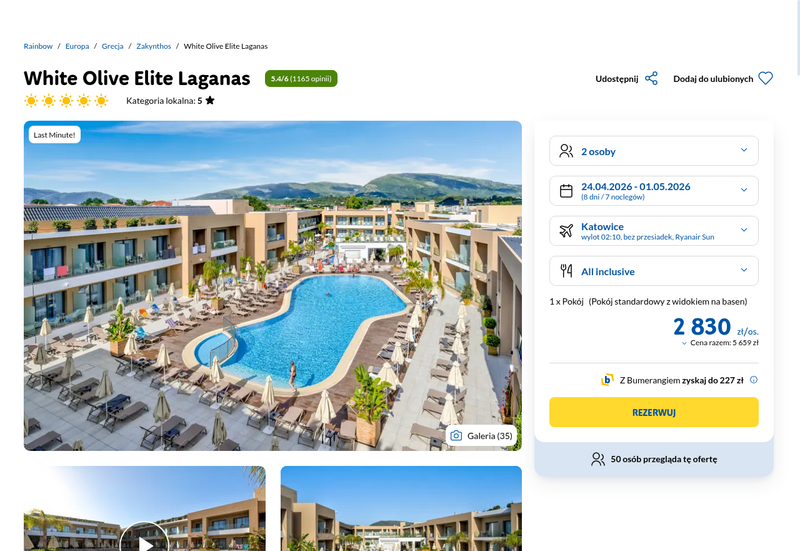 Aktualizacja: Okazja: Zakintos, bardzo dobry 5* hotel z all inclusive od 1511 zł!