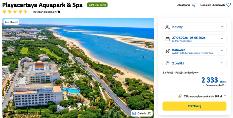 Misją Lastminuter.pl jest przedstawienie Ci najlepszych zdaniem naszej redakcji okazji na podróże. Opisujemy oferty znalezione przez nas w internecie i wskazujemy adresy internetowe, pod którymi samodzielnie możesz wykupić podróż lub elementy podróży. Ceny w artykułach są aktualne w chwili publikacji. Możemy otrzymywać wynagrodzenie od partnerów handlowych, do których Cię przekierowujemy. Nie ma to wpływu na cenę Twojej wycieczki. Powielanie publikacji zabronione.