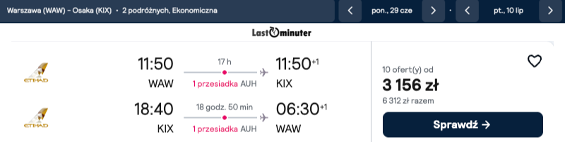 Atrakcyjne połączenie lotnicze do Osaki jest dostępne z wylotem z Warszawy.