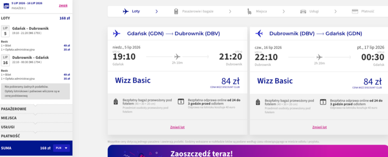 Ta wyjątkowa oferta to Twoja szansa na tanie i komfortowe dotarcie do jednego z najpiękniejszych zakątków Europy. W cenie biletu masz już zapewniony bagaż podręczny, a elastyczne opcje dodatkowe pozwolą Ci spersonalizować podróż według własnych potrzeb. Wyobraź sobie wieczorny spacer po murach obronnych Starego Miasta i kolację przy zachodzie słońca. Nie zwlekaj z decyzją, bo bilety w tak atrakcyjnych cenach często znikają błyskawicznie. Rezerwuj już teraz i przeżyj niezapomnianą przygodę w gorącej Chorwacji, ciesząc się każdą chwilą spędzoną na południu.