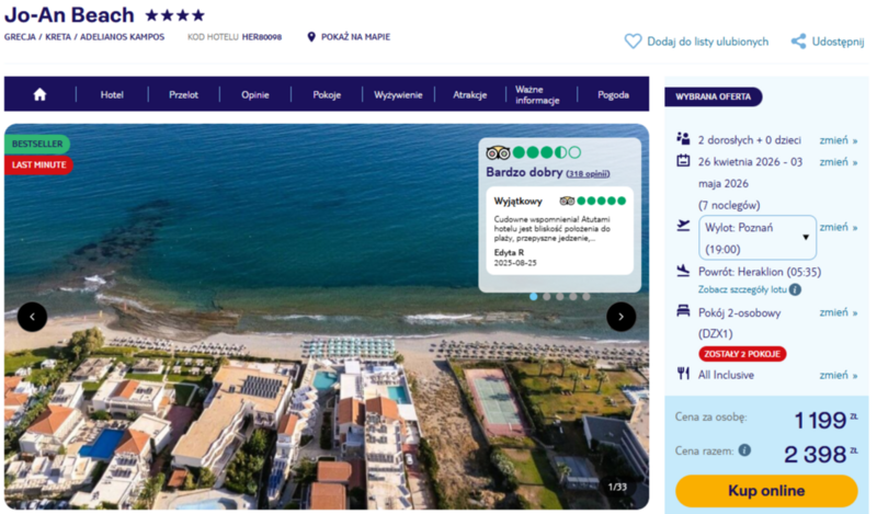 Misją Lastminuter.pl jest przedstawienie Ci najlepszych zdaniem naszej redakcji okazji na podróże. Opisujemy oferty znalezione przez nas w internecie i wskazujemy adresy internetowe, pod którymi samodzielnie możesz wykupić podróż lub elementy podróży. Ceny w artykułach są aktualne w chwili publikacji. Możemy otrzymywać wynagrodzenie od partnerów handlowych, do których Cię przekierowujemy. Nie ma to wpływu na cenę Twojej wycieczki. Powielanie publikacji zabronione.