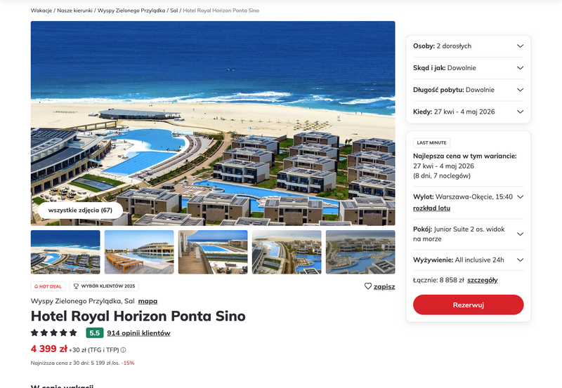 Aktualizacja: Wyspy Zielonego Przylądka: Luksusowy 5* hotel z all inclusive 24h przy plaży za 3999 zł