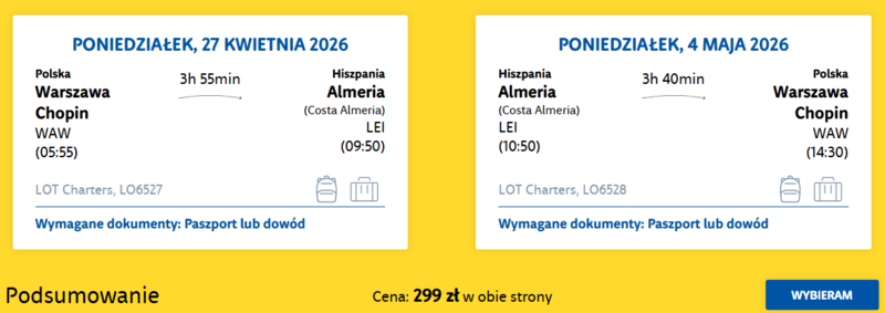 Tanie loty czarterowe z dużym bagażem do Hiszpanii (Almeria) za 299 zł