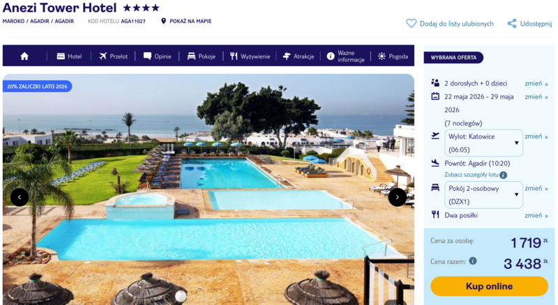 Majówka w tej części świata to idealny czas na łapanie pierwszych mocnych promieni słońca. Temperatura powietrza w Agadirze wynosi wtedy przyjemne 20 stopni Celsjusza, a dni są bardzo długie i pogodne. Maroko o tej porze roku zachęca nie tylko do kąpieli w basenach, ale i do korzystania z lokalnych wycieczek, takich jak wyprawy w góry Atlas czy przejażdżki po piaszczystych wydmach. Użytkownicy często wspominają w swoich opiniach o bardzo smacznych kolacjach i miłej obsłudze, co dopełnia obrazu idealnego urlopu.