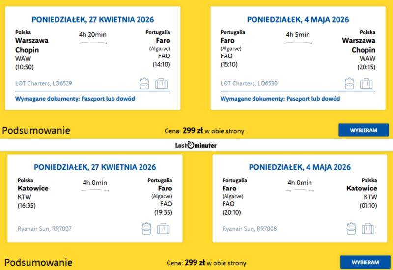 Faro, Portugalia, Katowice, Warszawa
