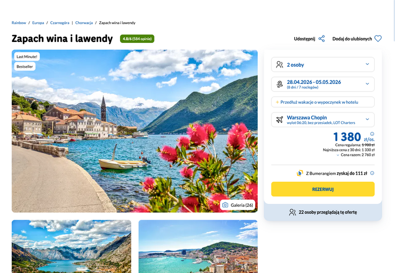 Misją Lastminuter.pl jest przedstawienie Ci najlepszych zdaniem naszej redakcji okazji na podróże. Opisujemy oferty znalezione przez nas w internecie i wskazujemy adresy internetowe, pod którymi samodzielnie możesz wykupić podróż lub elementy podróży. Ceny w artykułach są aktualne w chwili publikacji. Możemy otrzymywać wynagrodzenie od partnerów handlowych, do których Cię przekierowujemy. Nie ma to wpływu na cenę Twojej wycieczki. Powielanie publikacji zabronione.
