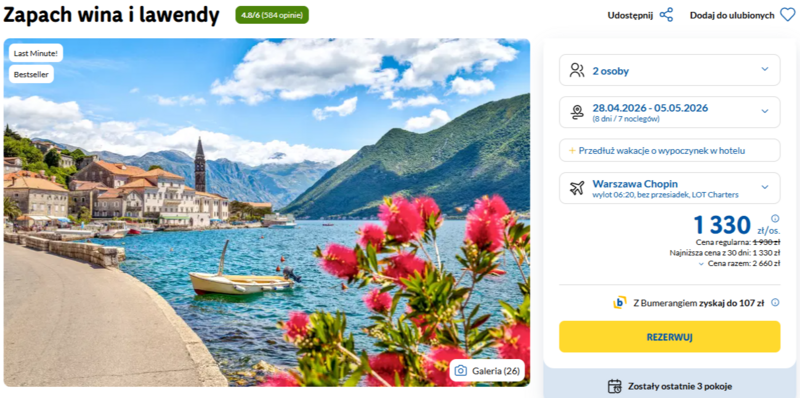 Misją Lastminuter.pl jest przedstawienie Ci najlepszych zdaniem naszej redakcji okazji na podróże. Opisujemy oferty znalezione przez nas w internecie i wskazujemy adresy internetowe, pod którymi samodzielnie możesz wykupić podróż lub elementy podróży. Ceny w artykułach są aktualne w chwili publikacji. Możemy otrzymywać wynagrodzenie od partnerów handlowych, do których Cię przekierowujemy. Nie ma to wpływu na cenę Twojej wycieczki. Powielanie publikacji zabronione.