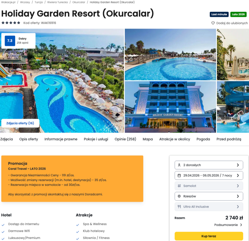 Misją Lastminuter.pl jest przedstawienie Ci najlepszych zdaniem naszej redakcji okazji na podróże. Opisujemy oferty znalezione przez nas w internecie i wskazujemy adresy internetowe, pod którymi samodzielnie możesz wykupić podróż lub elementy podróży. Ceny w artykułach są aktualne w chwili publikacji. Możemy otrzymywać wynagrodzenie od partnerów handlowych, do których Cię przekierowujemy. Nie ma to wpływu na cenę Twojej wycieczki. Powielanie publikacji zabronione.