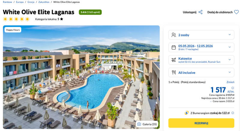 Szykowana jest luksusowa wyprawa z Katowic, Warszawy i Wrocławia do pięciogwiazdkowego obiektu na rajskim Zakintos.