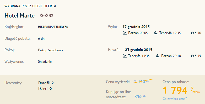 Wylot 17 grudnia z Poznania na Teneryfę na 6 dni.