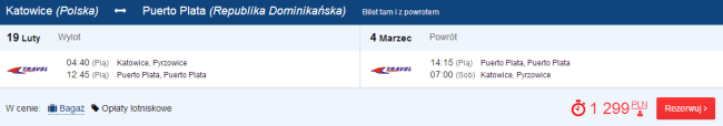 Wylot 19 lutego z Katowic do Puerto Plata (Dominikana) na dwa tygodnie.