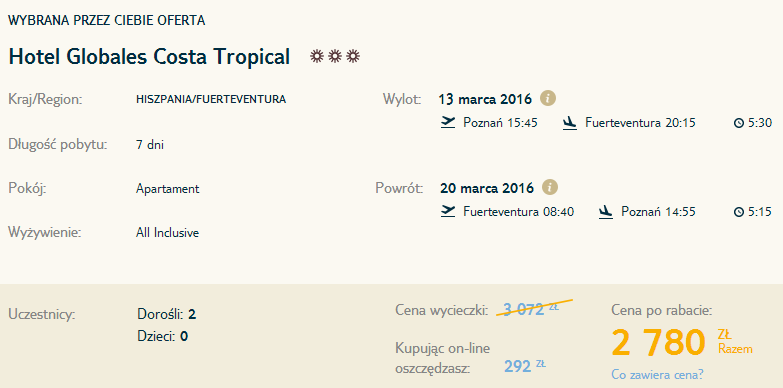 Wylot 13 marca z Poznania na Fuerteventurę na tydzień.