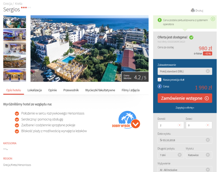 Kreta last minute: 3* hotel z all inclusive za 995 zł