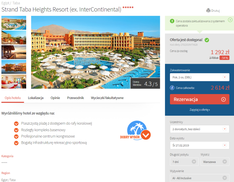 Oferty wycieczek dostarczone przez naszych partnerów nie są aktualizowane w czasie rzeczywistym, w związku z czym ceny i dostępność ofert mogą się nieznacznie różnić od aktualnych. Dokładamy wszelkich starań aby rozbieżności były jak najmniejsze.