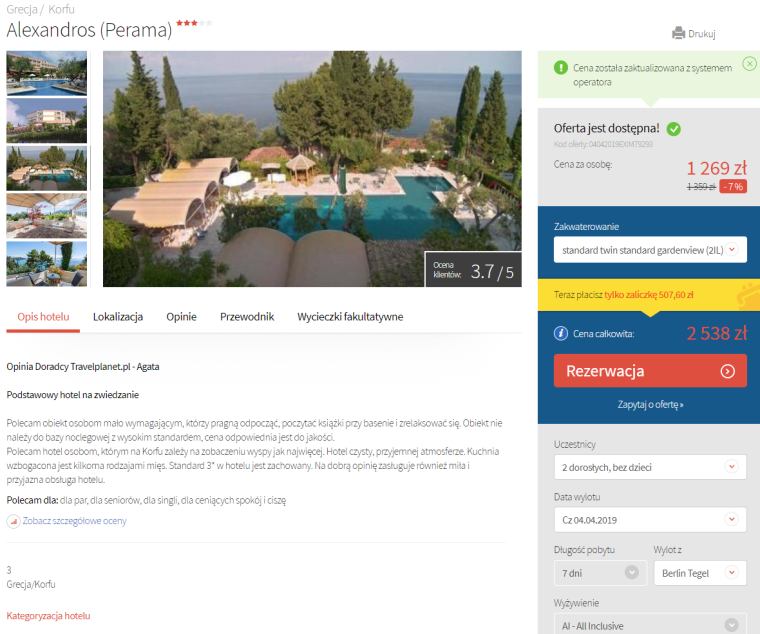 Oferty wycieczek dostarczone przez naszych partnerów nie są aktualizowane w czasie rzeczywistym, w związku z czym ceny i dostępność ofert mogą się nieznacznie różnić od aktualnych. Dokładamy wszelkich starań aby rozbieżności były jak najmniejsze.