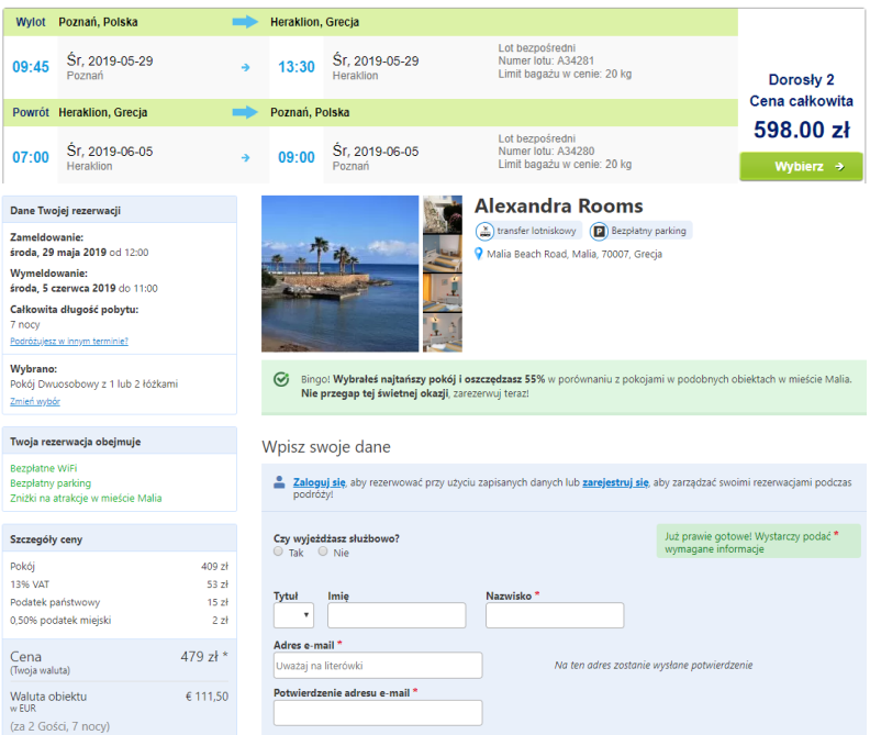 Bilety lotnicze na trasie Poznań - Heraklion - Poznań za 598 zł dla 2 osób rezerwujesz tutaj