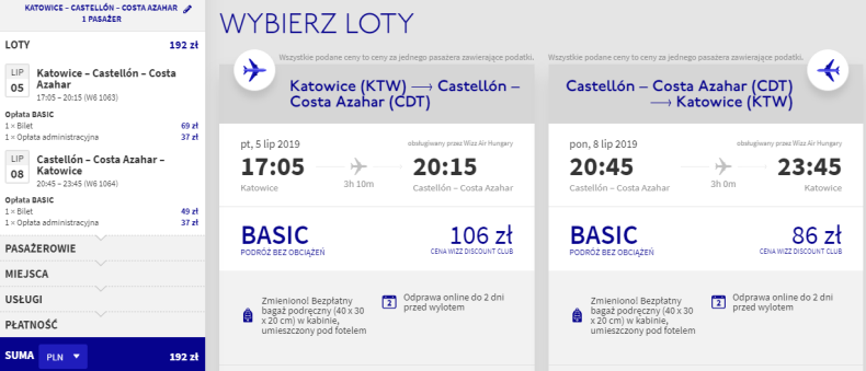 Wyloty w lipcu z Katowic do Castellón linią Wizz Air. Cena dla członków WDC. Wyloty w dogodnym terminie piątek o godz. 17 - poniedziałek wieczór, więc nie stracisz dużo urlopu odwiedzając malowniczy region Hiszpanii.