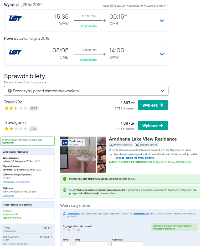 Bilety lotnicze na trasie Warszawa - Kolombo - Warszawa od 3794 zł dla 2 osób rezerwujesz tutaj
