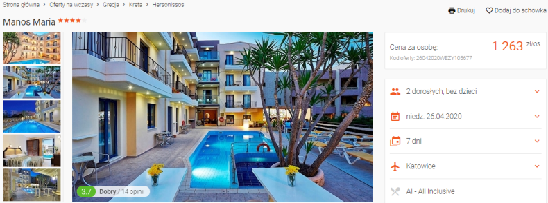 Wylot z Katowic. Zaplanujcie okres na przełomie kwietnia i maja, i lećcie na największą grecką wyspę. Zakwaterowanie z all inclusive umili czas i pozwoli naładować baterie przed powrotem do codziennych obowiązków.