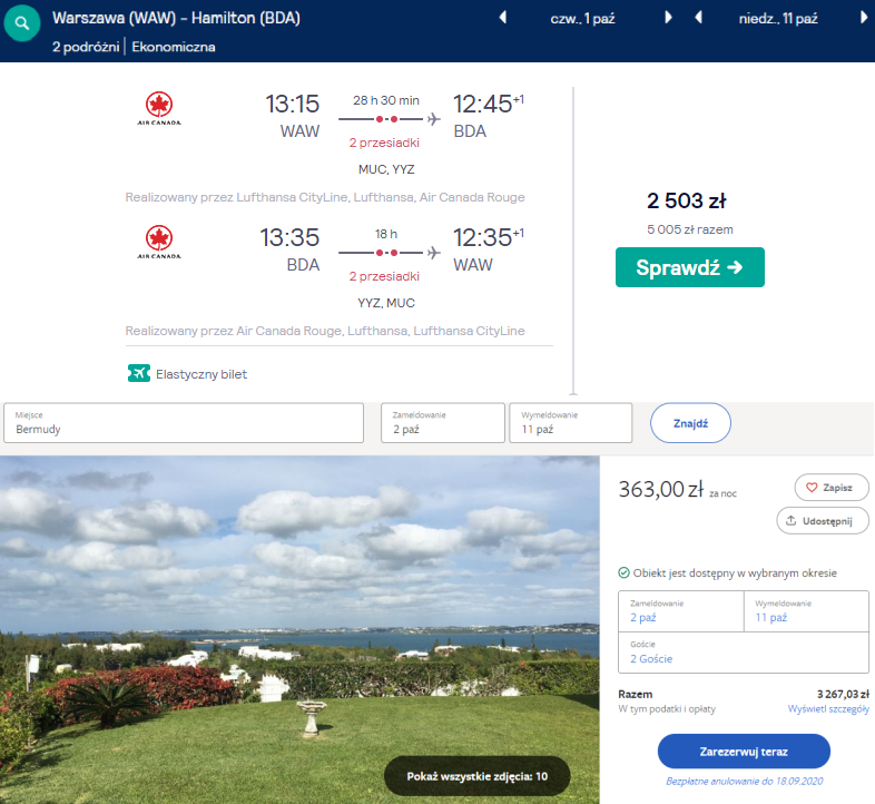Bilety lotnicze na trasie PL - Hamilton - PL od 5005 zł dla 2 osób rezerwujecie tutaj. W drodze "tam" czeka was długa przesiadka w Kanadzie (Toronto).