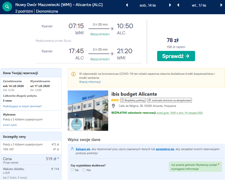 Podróż na trasie Warszawa (Modlin) - Alicante - Warszawa (Modlin) za 156 zł dla 2 osób rezerwujecie tutaj.