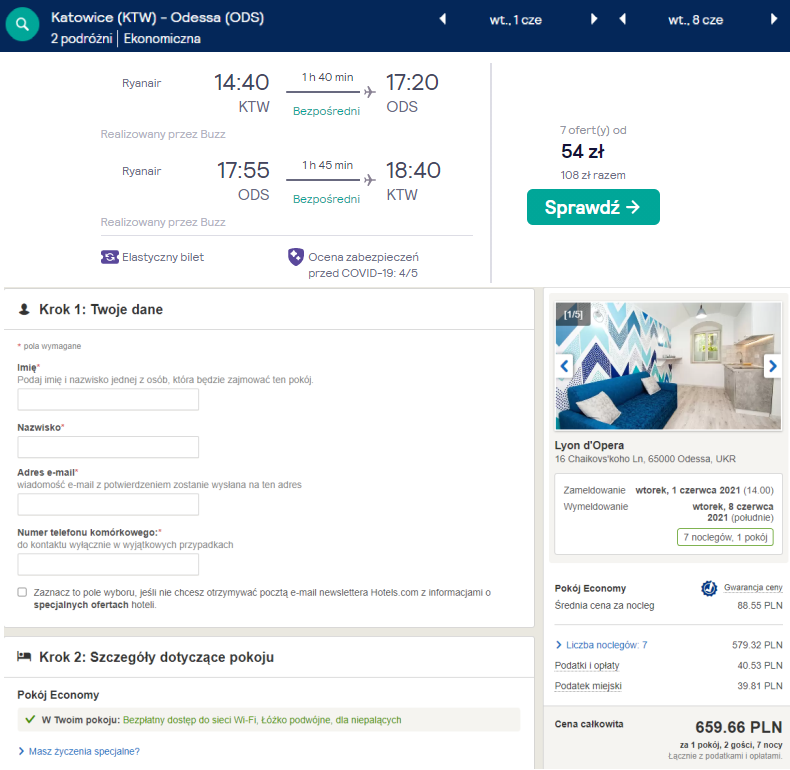 Bilety lotnicze na trasie Katowice - Odessa - Katowice za 108 zł dla 2 osób rezerwujecie tutaj.