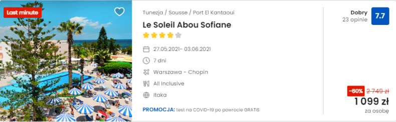 Oferta promocyjna z testem na COVID-19 po powrocie do Polski w cenie wycieczki.