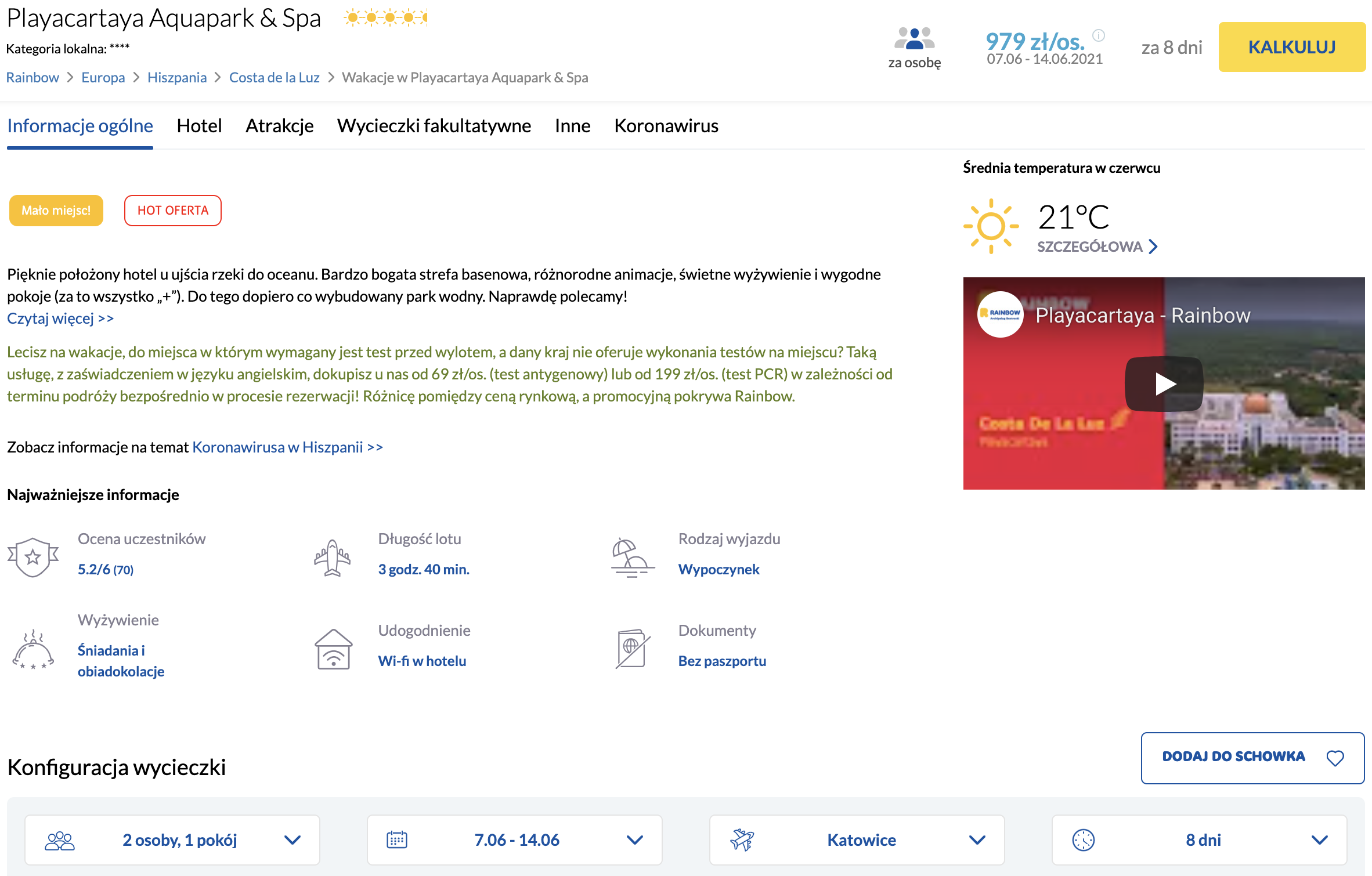 Wyloty z Katowic i Warszawy. Nowo otwarty aquapark, bardzo bogata strefa basenowa, różnorodne animacje, świetne wyżywienie i wygodne pokoje - oto główne atuty Playacartaya Aquapark & Spa.