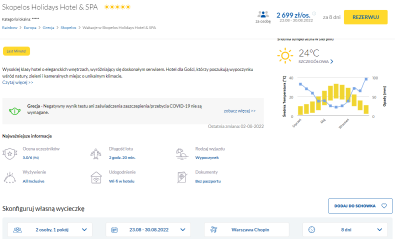 Wylot do Grecji z Warszawy. Skopelos Holidays Hotel & SPA jest komfortowym, kameralnym obiektem o eleganckich wnętrzach. Oferuje basen, restaurację główną z tarasem, bar wewęntrzny i bar przy basenie.